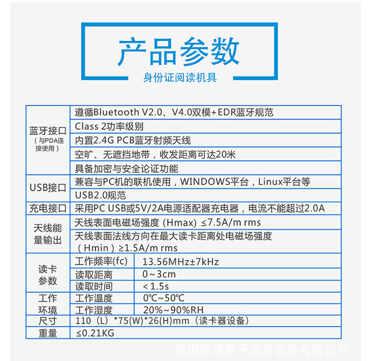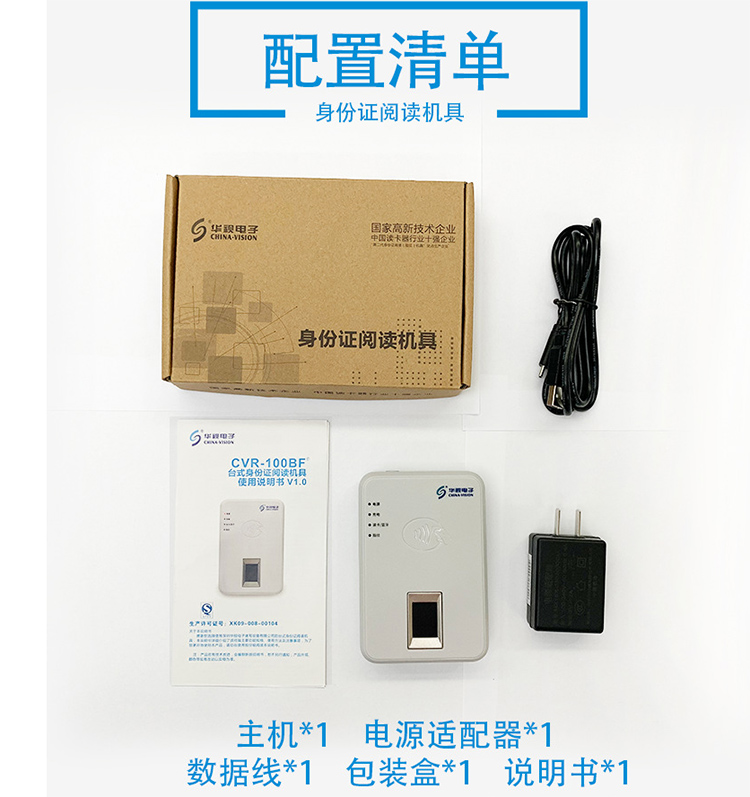(*由于產(chǎn)品升級或其他原因,華視CVR-100BF身份證閱讀器產(chǎn)品實際參數(shù)有可能變更,以實際產(chǎn)品為準。本文中的所有陳述、信息和建議也不構(gòu)成任何明示或暗示的擔保)