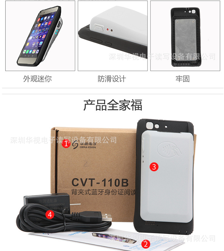 華視CVT-110B背夾式藍牙身份證閱讀機具可以讀取身份證信息,藍牙鏈接手機讀取,可以方便的固定在手