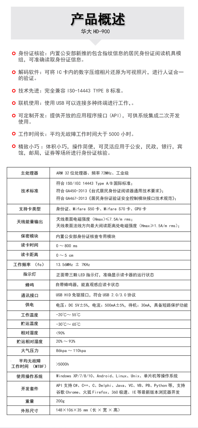 (*由于產品升級或其他原因,華大身份證讀卡器產品實際參數有可能變更,以實際產品為準。本文中的所有陳述、信息和建議也不構成任何明示或暗示的擔保)